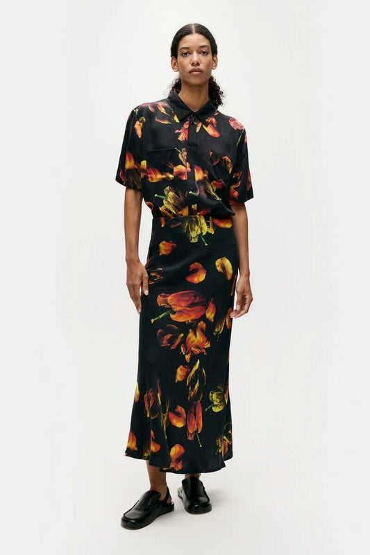LONG BIAS CUT SKIRT-TULIPA BLACK
