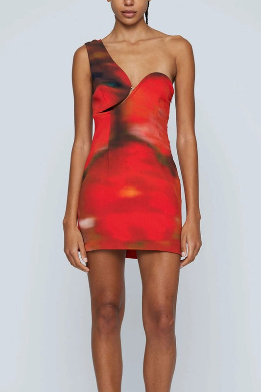 LILA ONE SHOULDER MINI DRESS-ROSE