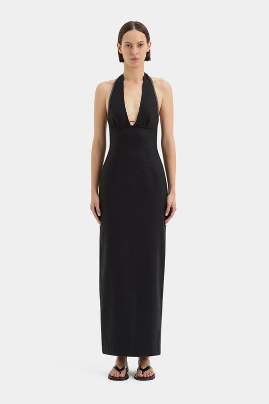 VIOLET HALTER MIDI DRESS-BLACK